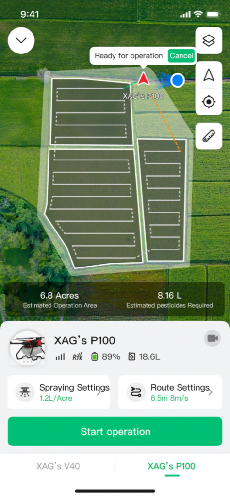 The XAG P100 Agricultural Drone is designed with various intelligent flight modes, making it an adaptable and versatile tool for different agricultural tasks. These flight modes include terrain following, route planning, and automatic return home, ensuring safe and efficient operation.