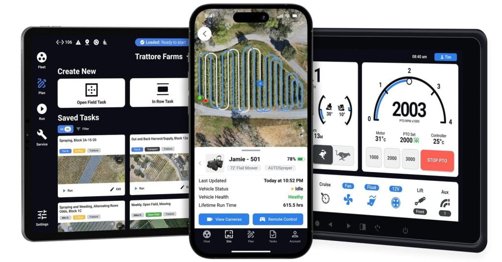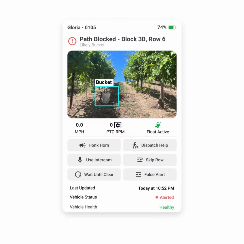The Agtonomy Robot is equipped with robust software and a mobile-first app that puts farmers in control. With just a few taps, farmers can assign tasks to their team, configure missions and workloads, and manage their blocks.
